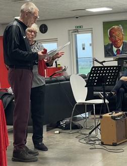 Under guitarledsagelse af Ole Bitsch kunne forsamlingen istemme Benny Andersens Barndommens land.